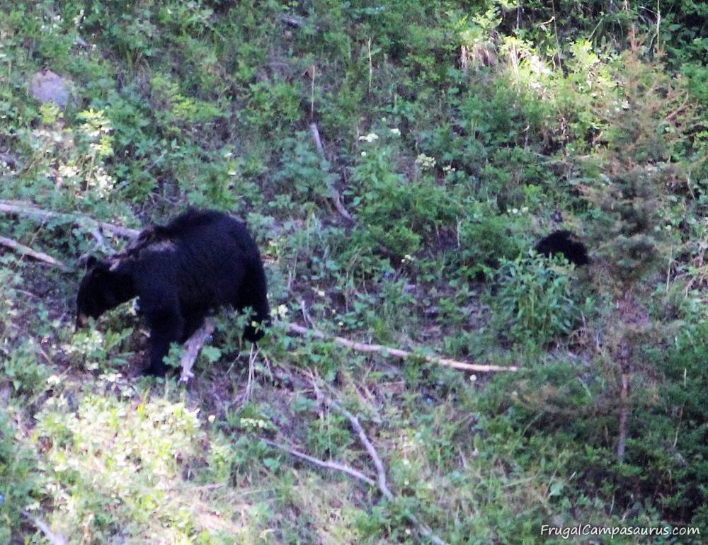 As we slowly drove by, a ranger told us a mamma bear and cubs were walking along the ridge. Fun!
