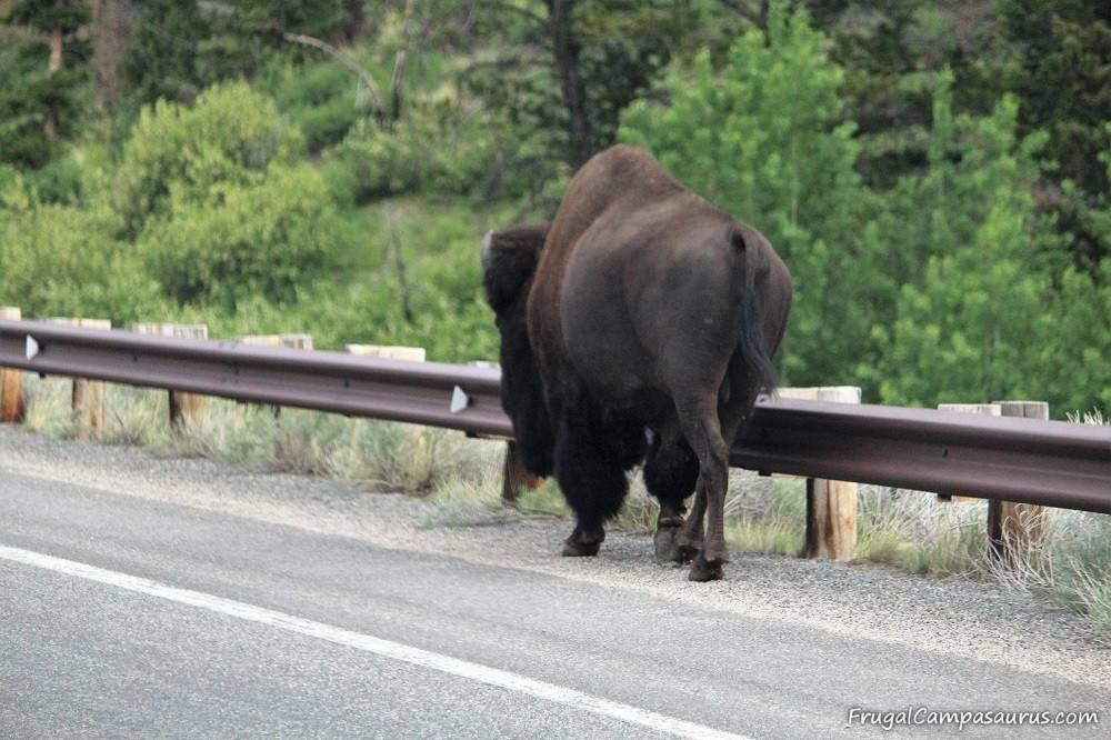 I wish the camera had not been packed and ready to go to the park, but we really enjoyed seeing the bison in the campground!
